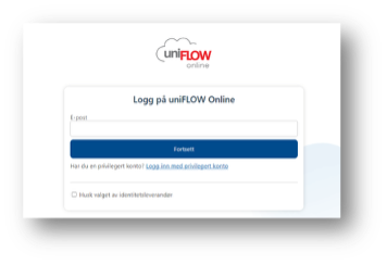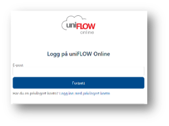 1.Gå til https://eu.uniflowonline.com/ og legg inn din e-post adresse og velg «Forsett»