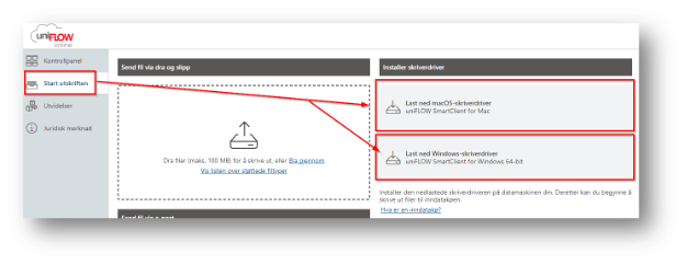 3. Velg «Start utskriften» og riktig Skriverdriver: